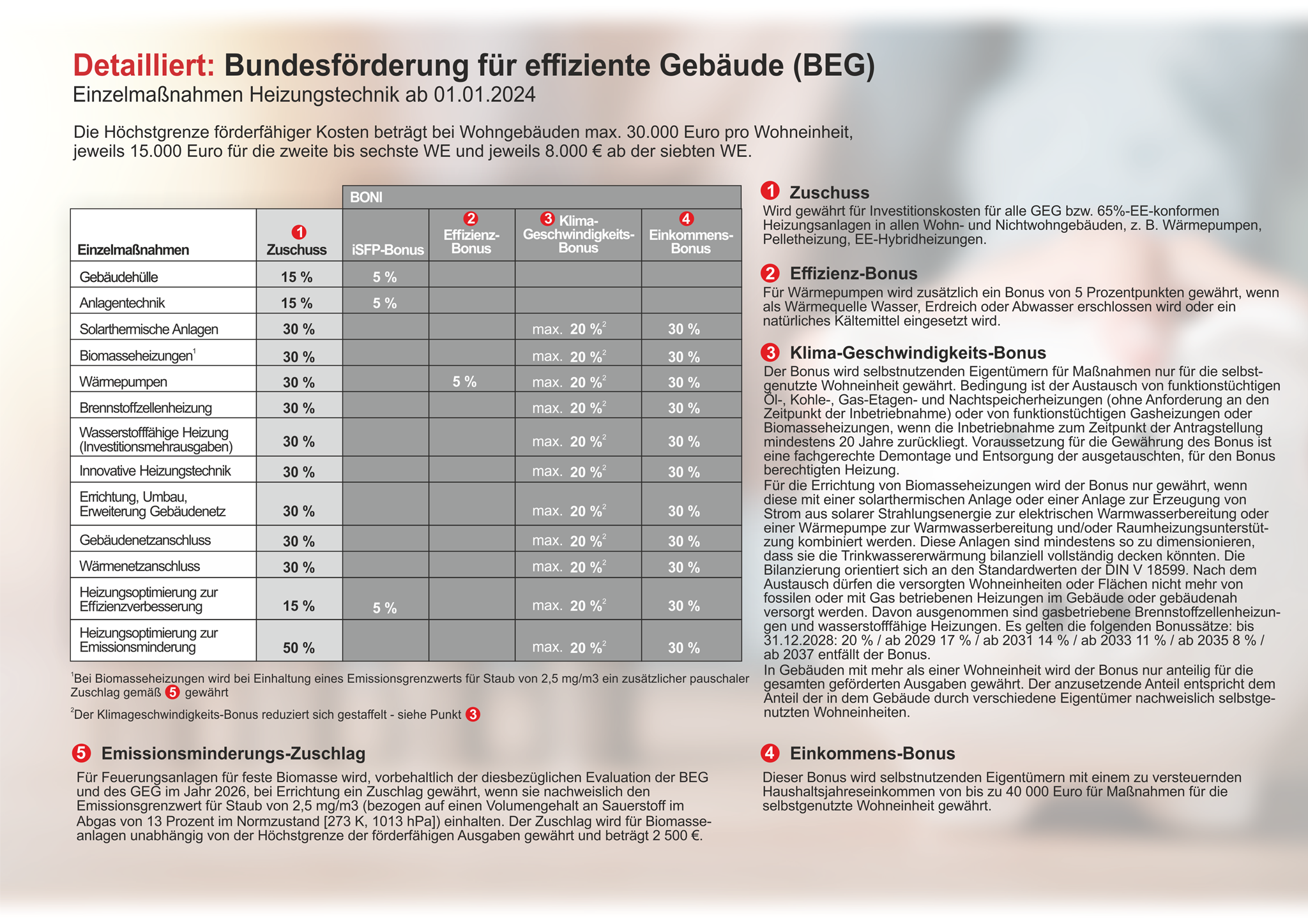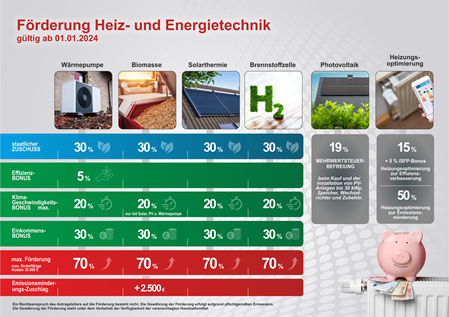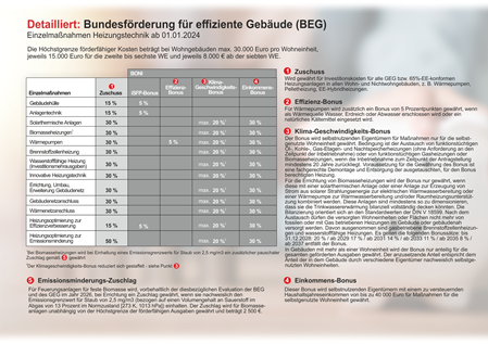 Denn seit dem 01.01.2024 gilt die neue "Bundesförderung für effiziente Gebäude" (BEG). Das heißt, Sie erhalten bis zu 70 % der Investitionssumme als Zuschuss vom Staat, wenn Sie ihre alte Heizung durch ein Heizsystem mit erbeuerbaren Energien ersetzten. Wir beraten Sie gern!